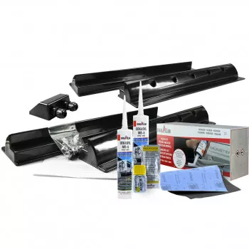 Eine richtig ausgeführte Verklebung ist im harten Reisemobil- oder Bootseinsatz jeder Schraubverbindung überlegen. Auf lackierten bzw. GFK-Flächen lässt sich eine Festigkeit von über 4 N/mm2 erreichen, dies wäre auf die Klebefläche gerechnet ein Wert, der bei einer Schraubverbindung in die dünne Alu- bzw. GFK-Trägerschicht nie erreichbar wäre. Dieses Klebeset ermöglicht selbst einen Laien, eine absolut feste Verbindung zwischen Spoilern und dem jeweiligen Untergrund zu schaffen.Das Klebe-Set enthält alle Komponenten, die nötig sind, damit sogar der Selbsteinbauer eine professionelle Verbindung herstellen kann. Edelstahlschrauben zum Befestigen der Solarmodule liegen ebenso bei wie eine ausführliche Klebeanleitung. Zusätzlich benötigen Sie lediglich eine handelsübliche Handhebelpresse für Kartuschen sowie ein fusselfreies Tuch.