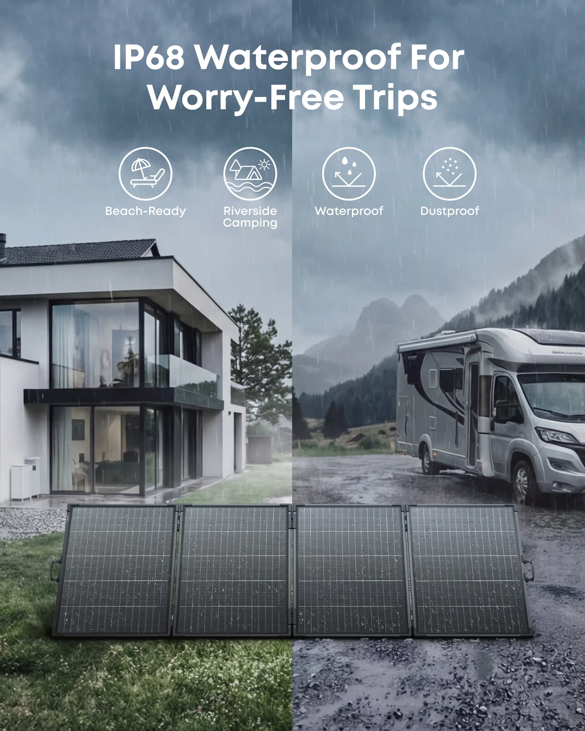 Optimal für Deutschland und Europa. N-Typ-Zellen arbeiten auch bei Hitze und wechselhaftem Wetter effizient. IP68-Schutz gegen Regen. Mit C2000 Gen 2 + Alternator Charger = komplett autarkes Wohnmobil-System. Versand aus Deutschland bei solar-autark.com.
